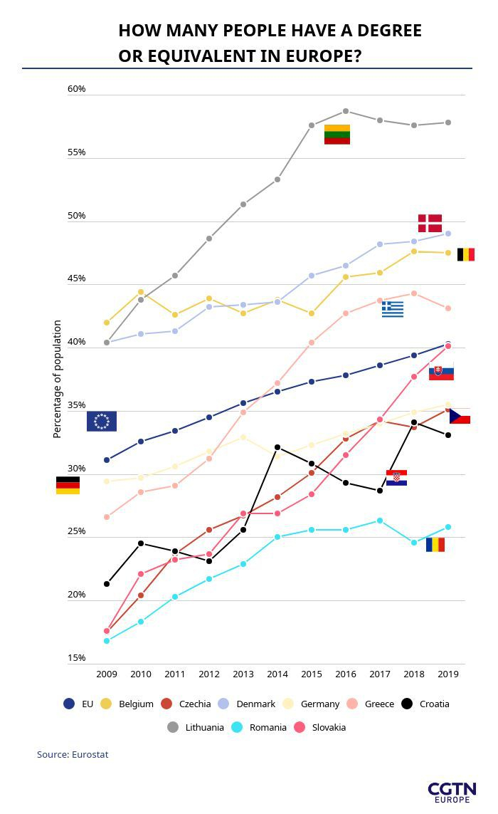 More than 40 percent of EU citizens aged between 30 and 34 completed a higher level education in 2019 – obtaining a diploma, or getting an undergraduate or postgraduate degree.