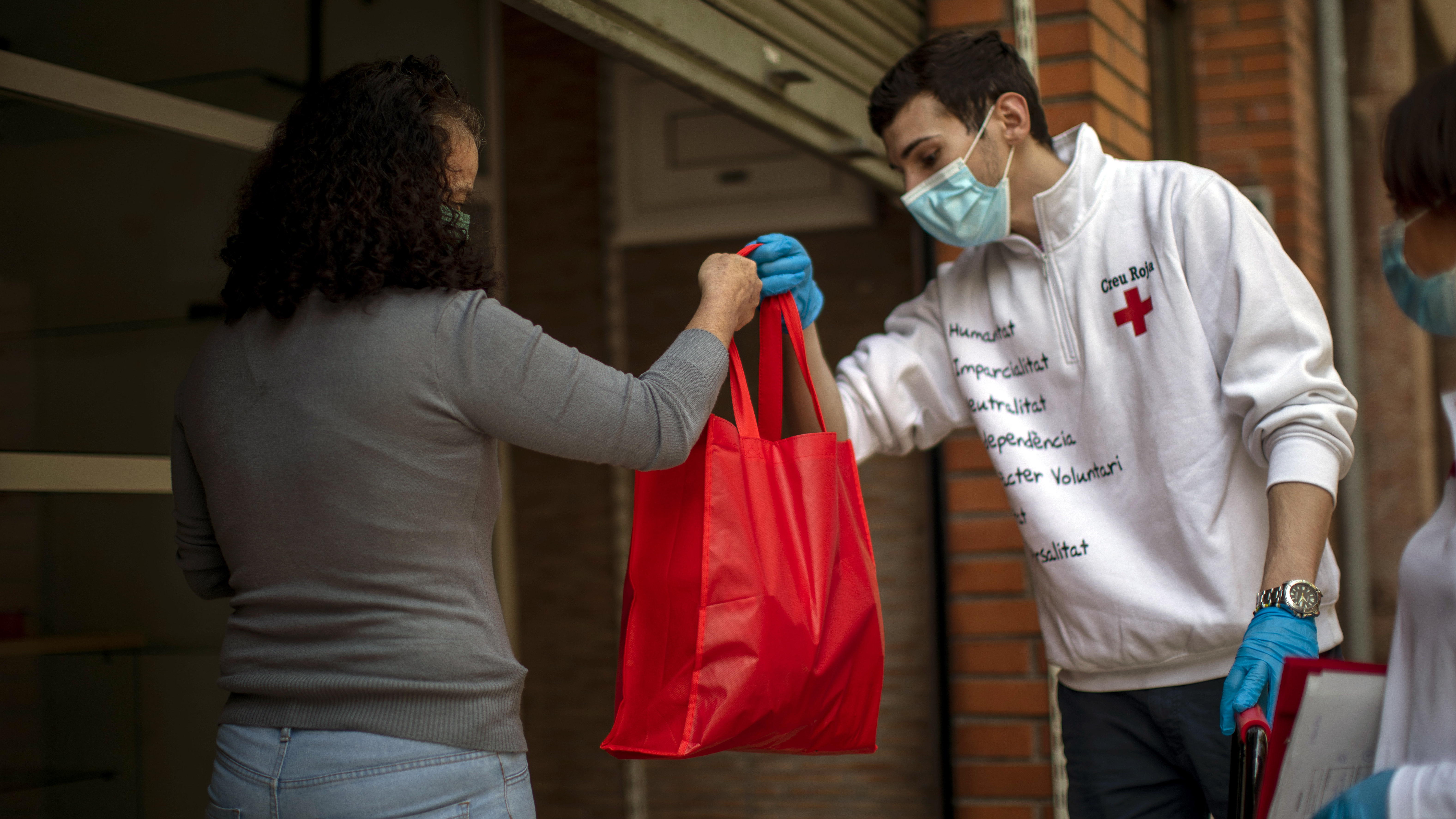 Food delivered to a family in need during a food distribution drive. /AP/Emilio Morenatti