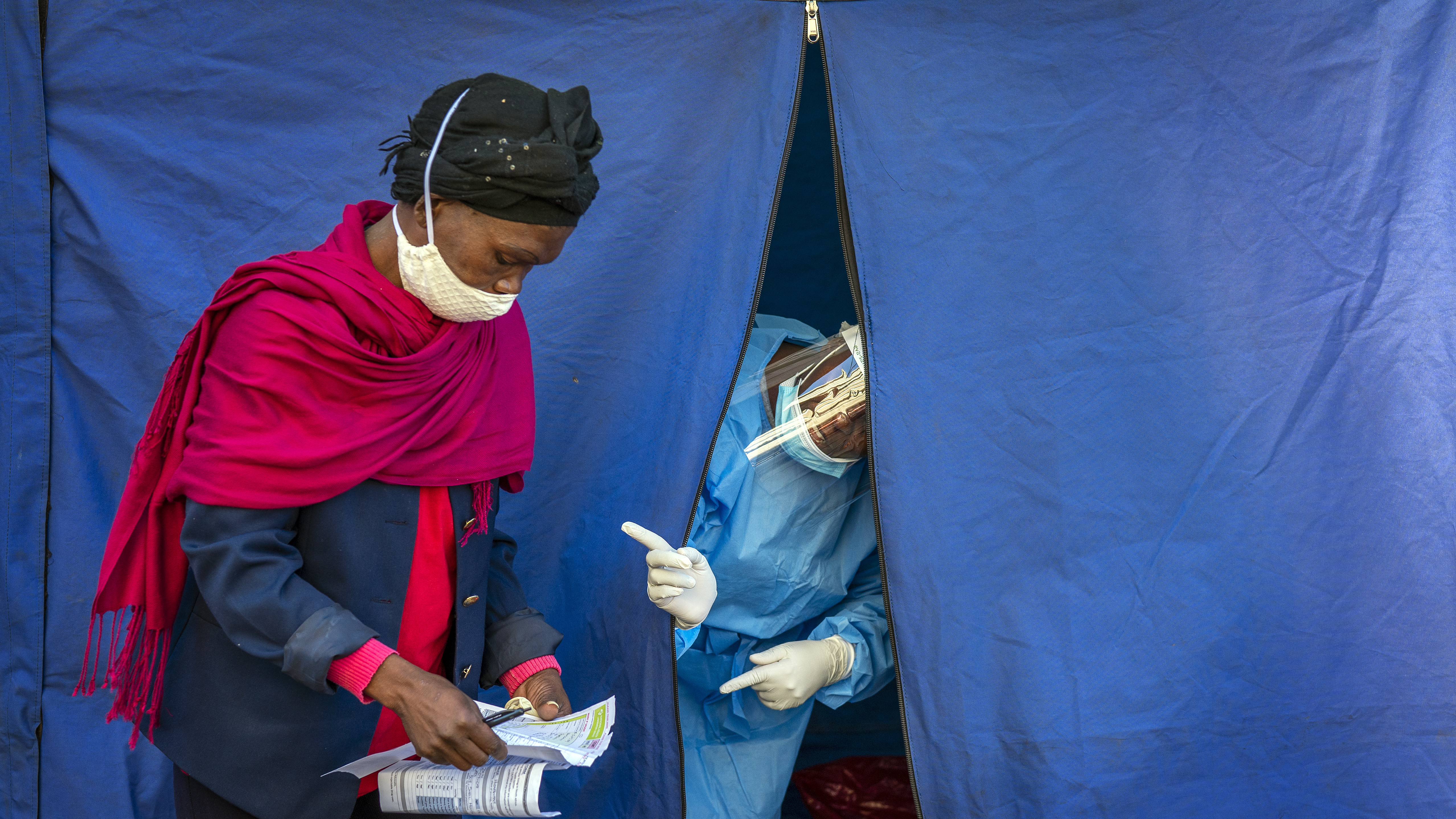 Heath officials check the listings of people who are to be tested for COVID-19. /AP Photo/Jerome Delay