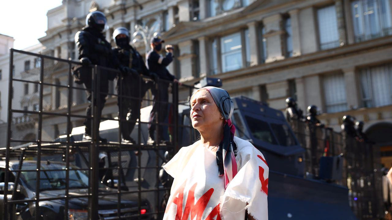 Riot police and troops were also present during the protest, and an estimated 125 people have been detained, according to Russian news agency RIA.