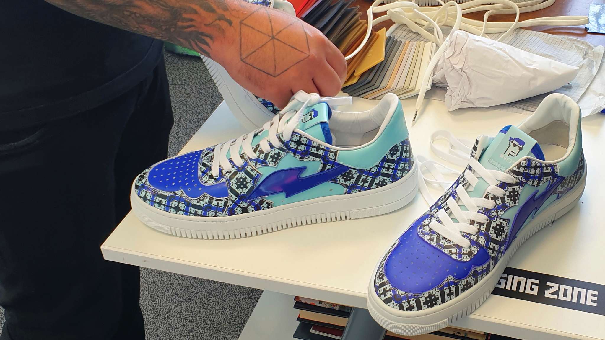 A physical version of RTFKT's sneakers. The product was sold as both a virtual and physical shoe by the company. /Reuters/ RTFKT