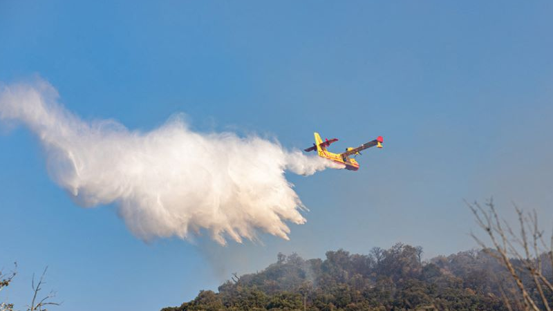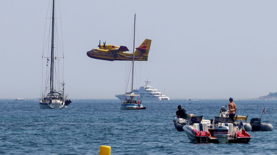 Firefighting planes were deployed to prevent more tourist areas being affected by the flames. /Reuters/Eric Gaillard
