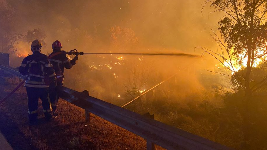 Some 900 firefighters tackled the blaze, which began late on Monday at a highway service area. /AFP/Nicolas Tucat
