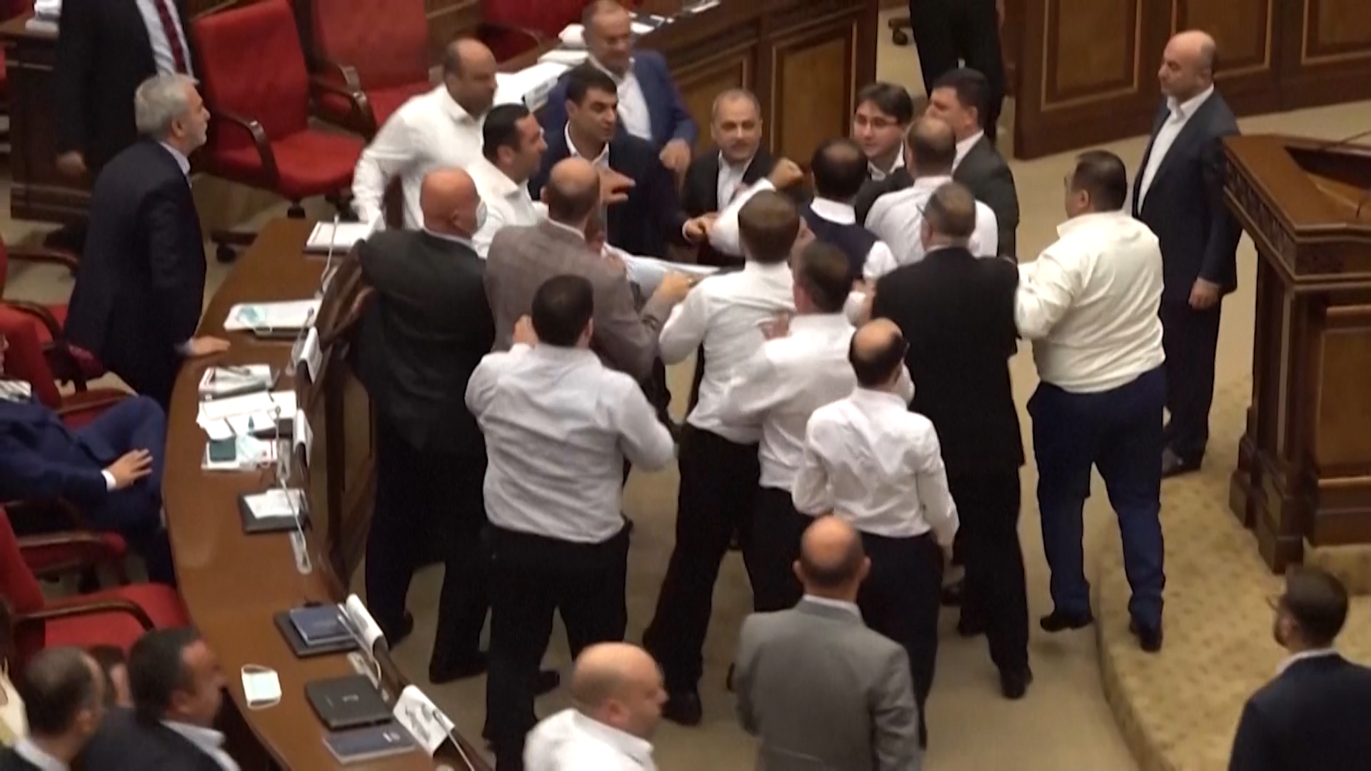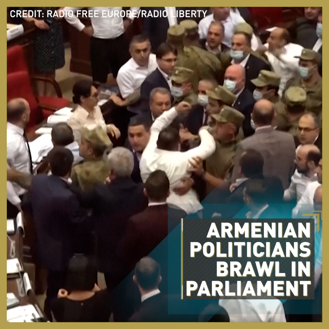 Armenian politicians had to be pulled apart by military guards after fighting broke out on the floor of the parliament assembly. /Radio Free Europe/Radio Liberty/