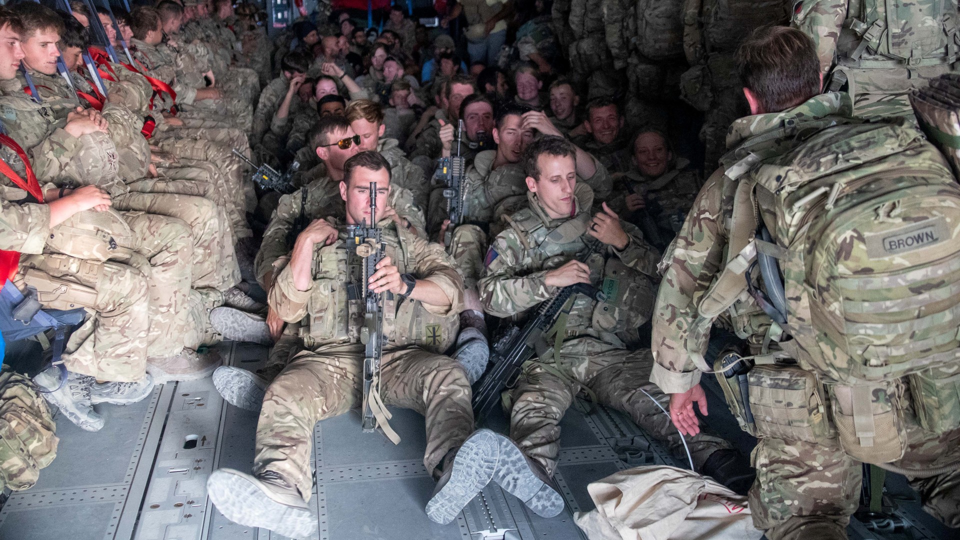 UK military personnel on a flight out of Afghanistan on August 28. /Jonathan Gifford/UK Ministry of Defense via Reuters