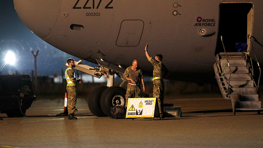 British Armed Forces personnel disembark a British Royal Air Force aircraft at Brize Norton, southern England, on Sunday after it took part in evacuation operations. /Peter Nicholls/PoolAFP