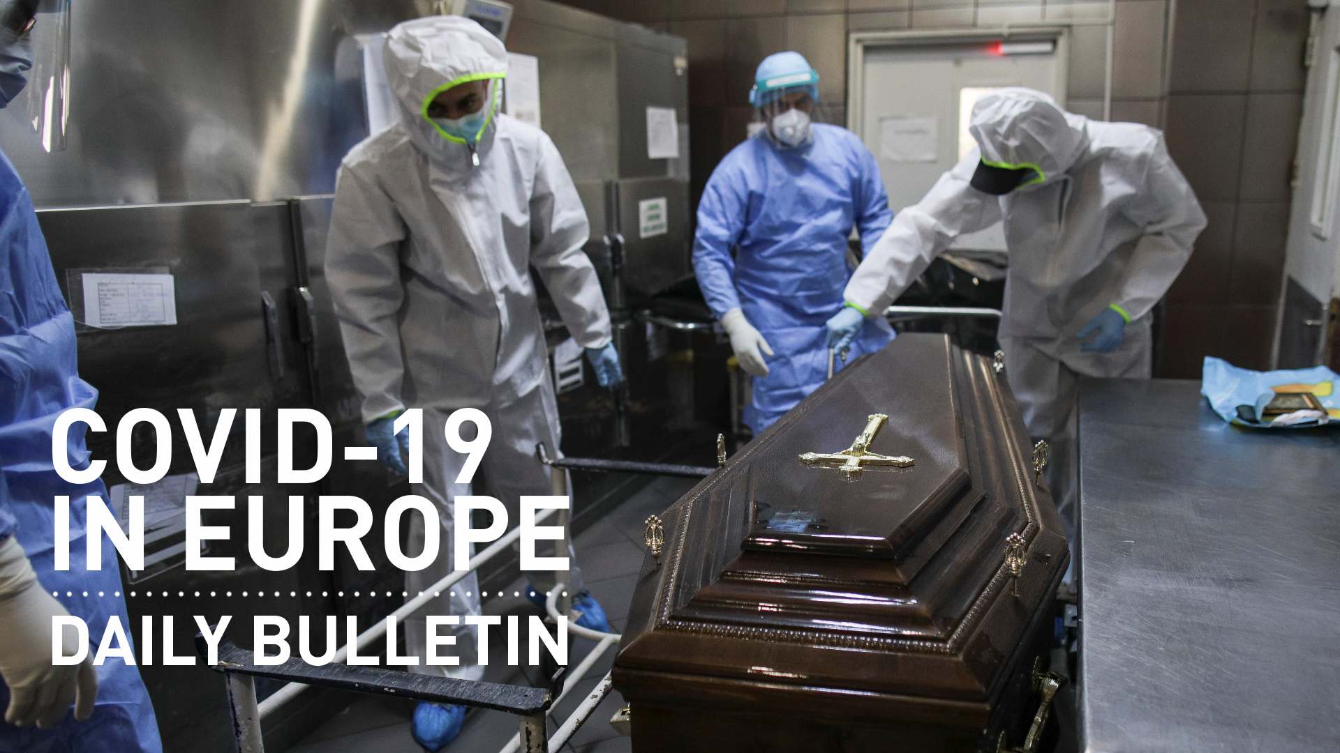 Employees at a funeral home in Bucharest, Romania preparing the body of a victim of COVID-19 for transport to a cemetery on October 29. /Inquam Photos/Octav Ganea via Reuters