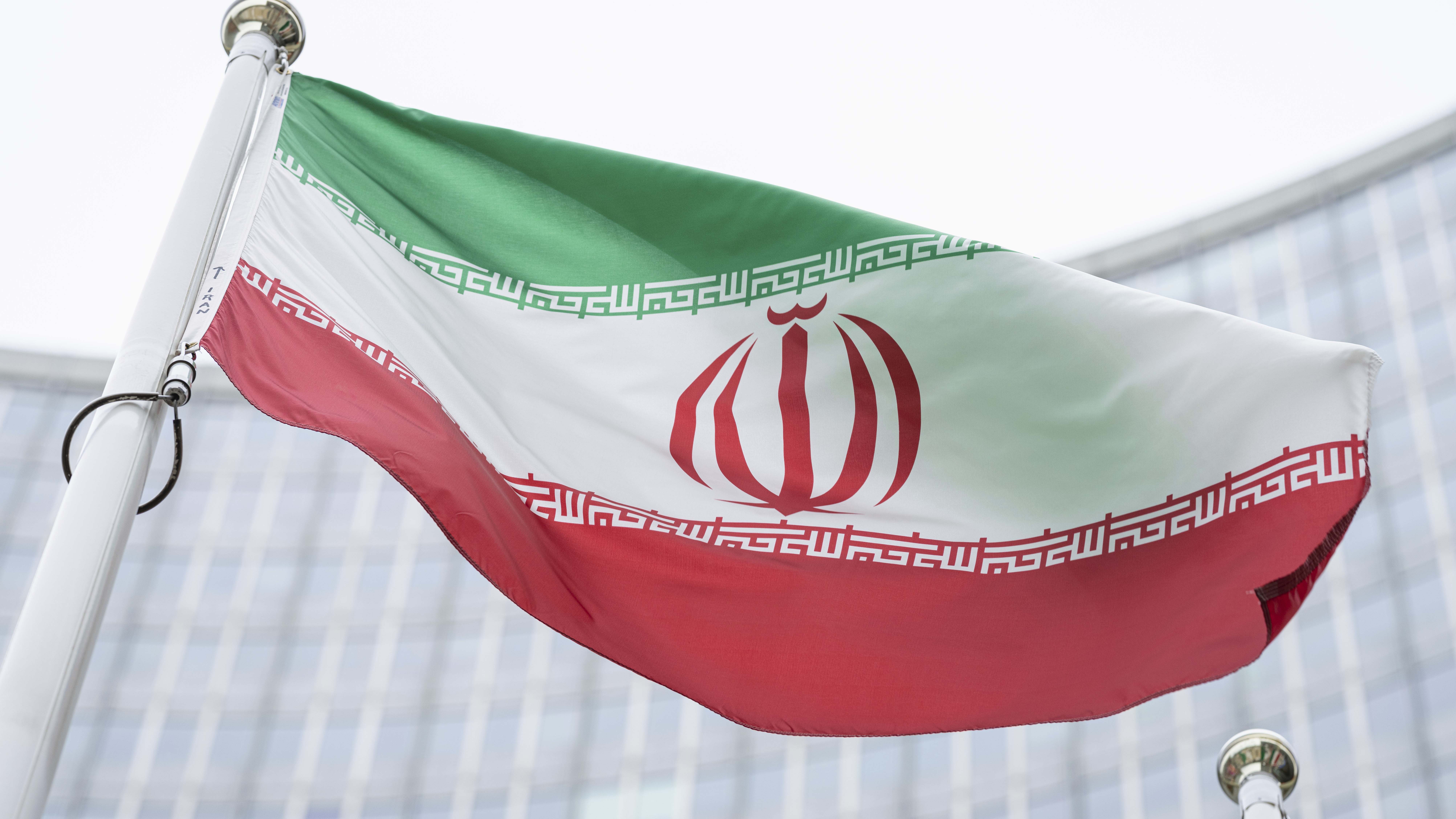 The flag of Iran waves in front of the the International Center building in Vienna, which houses the headquarters of the International Atomic Energy Agency. /AP Photo/Florian Schroetter