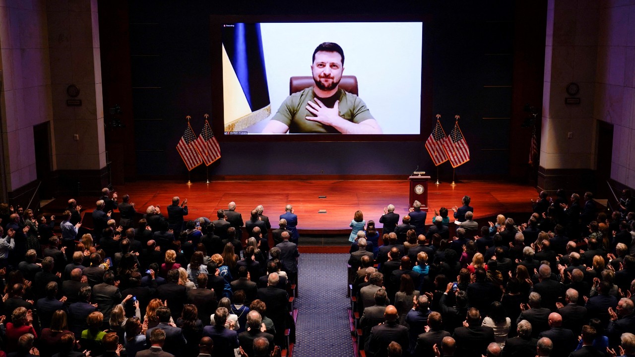Ukrainian President Volodymyr Zelenskyy delivered a powerful video address to U.S. politicians. /J. Scott Applewhite/Pool via Reuters