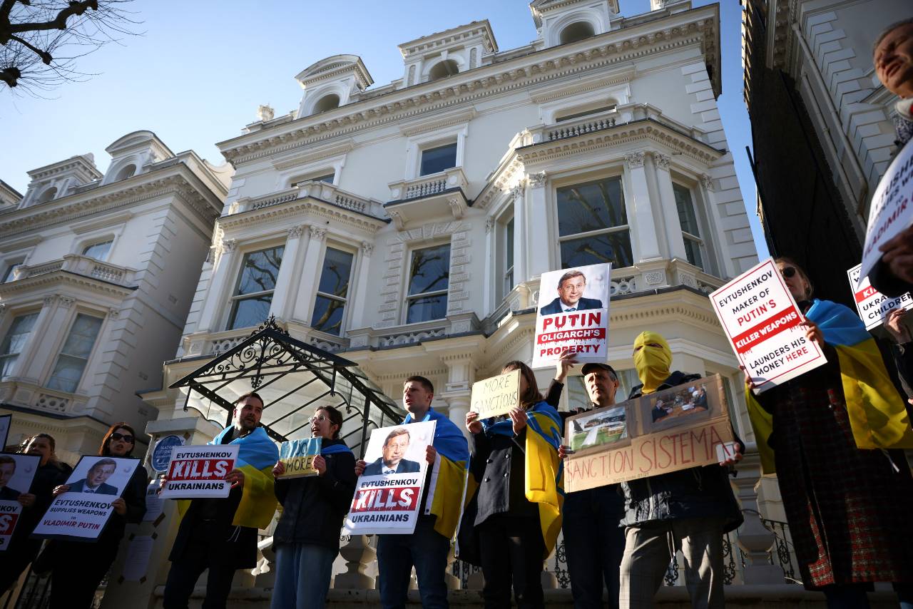 Demonstratorsm call on EU leaders to ban imports of Russian gas outside a European Council meeting in London. /Johanna Geron/Reuters