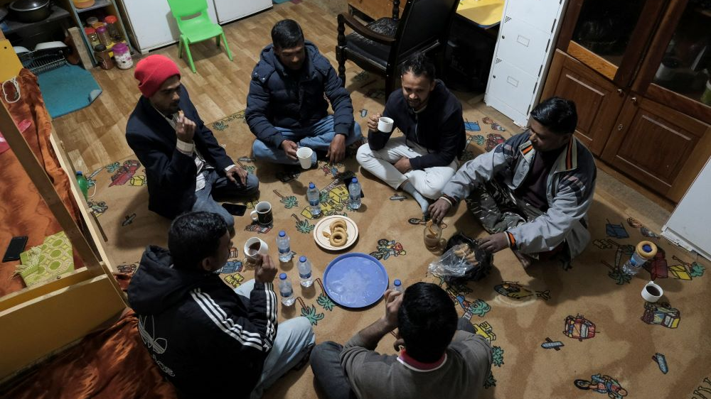 Bangladeshi migrants drinking tea in Benghazi, but others who make it to Libya are less fortunate./Esam Omran Al-Fetori/Reuters