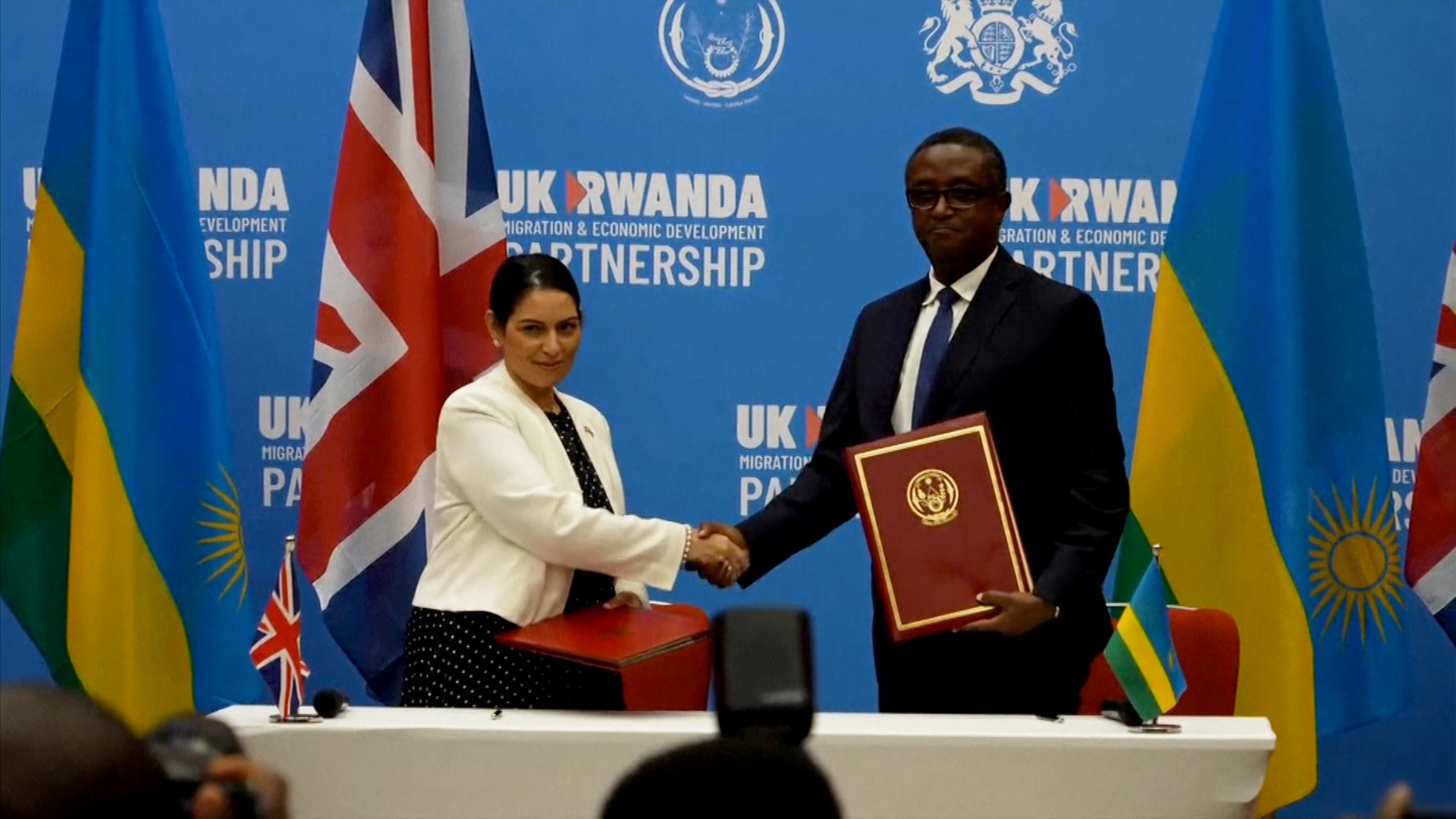 Cover photo: Priti Patel after signing the partnership agreement in Kigali, Rwanda, April 14. /Jean Bizimana/Reuters
