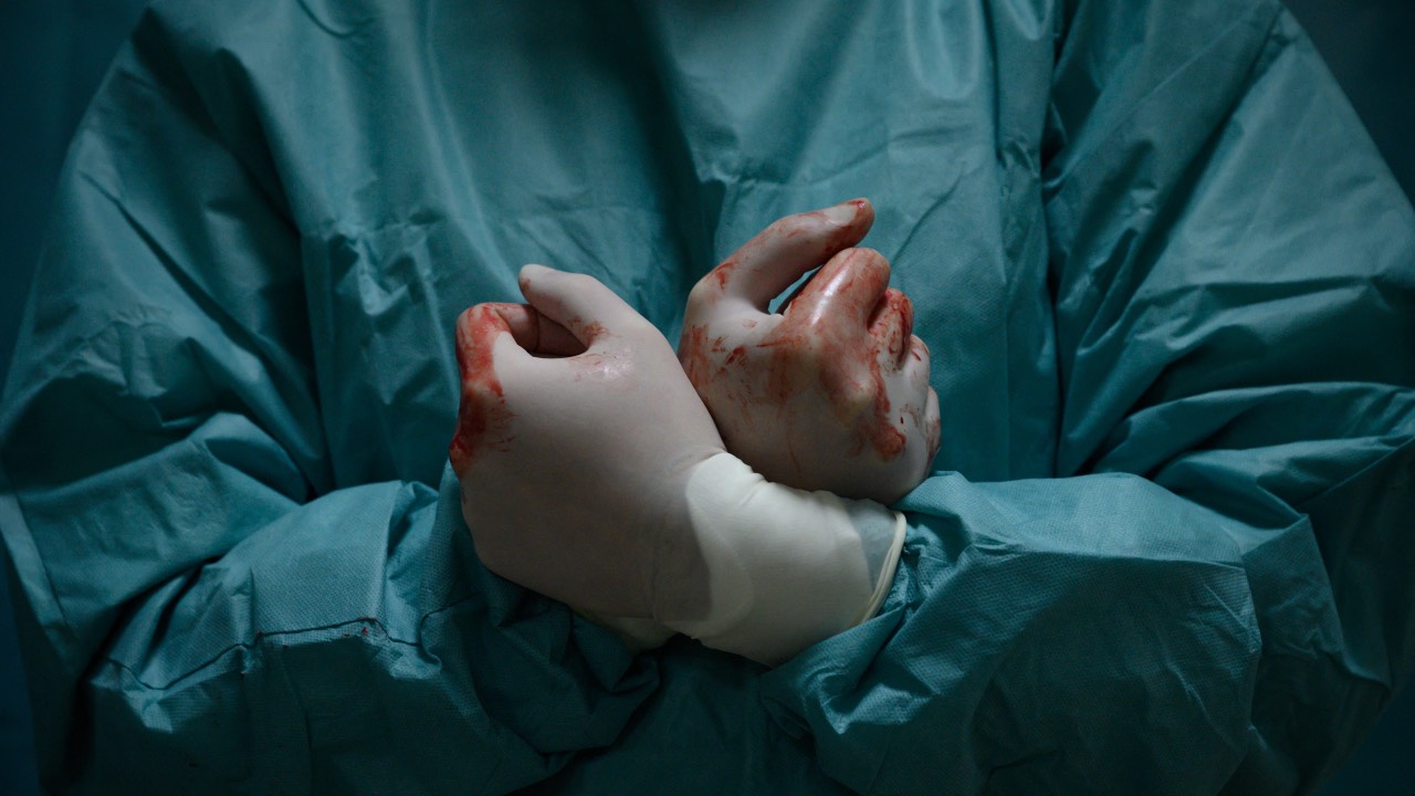 A doctor stands outside an operating theater during an operation on the leg of a wounded Ukrainian soldier at a military hospital in Zaporizhzhia. /Ed Jones/AFP
