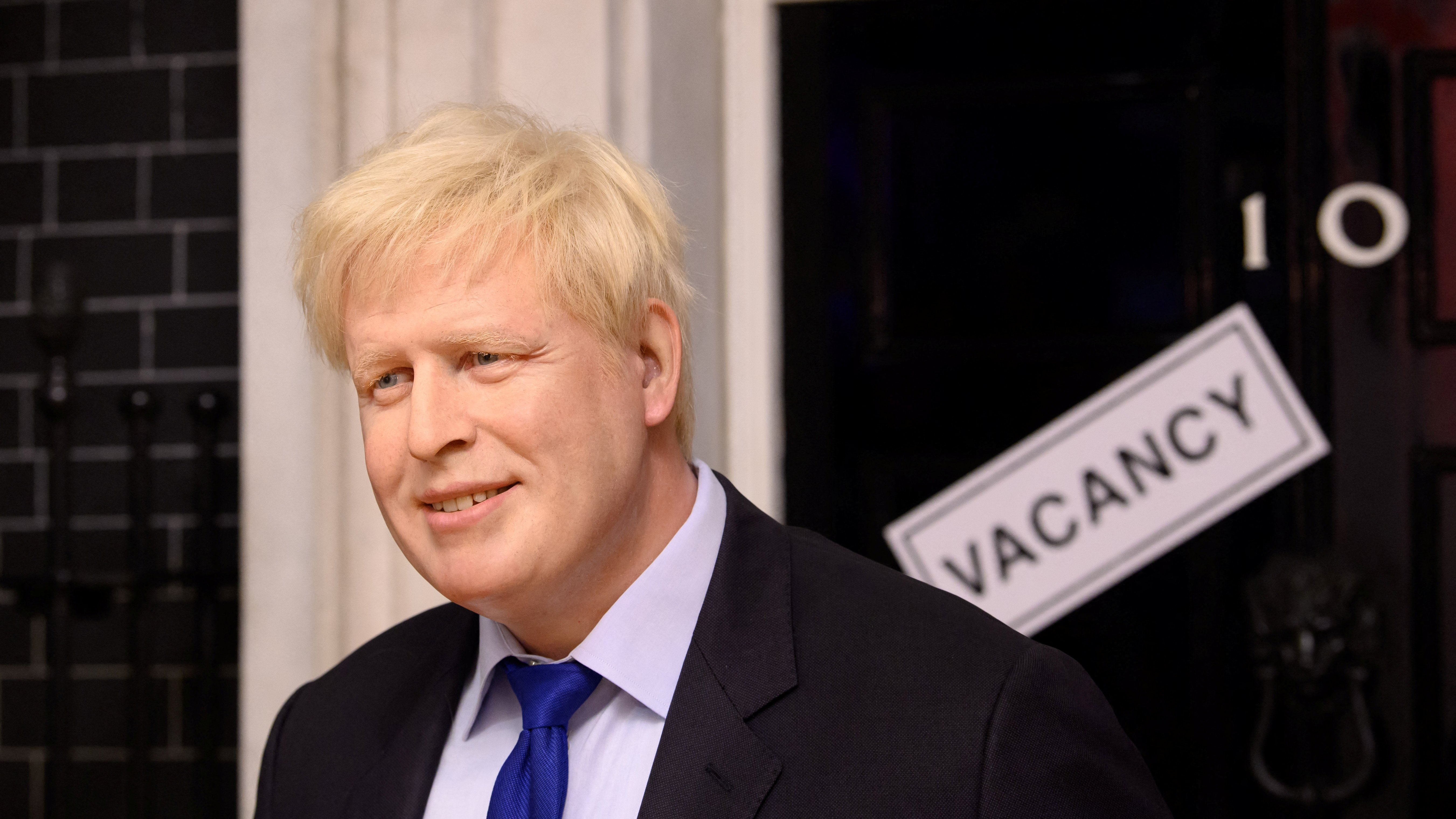 A wax figure of Boris Johnson pictured next to a 'vacancy' sign on 10 Downing Street at Madame Tussauds, in London, Britain July 7, 2022. /Reuters/Madame Tussauds London