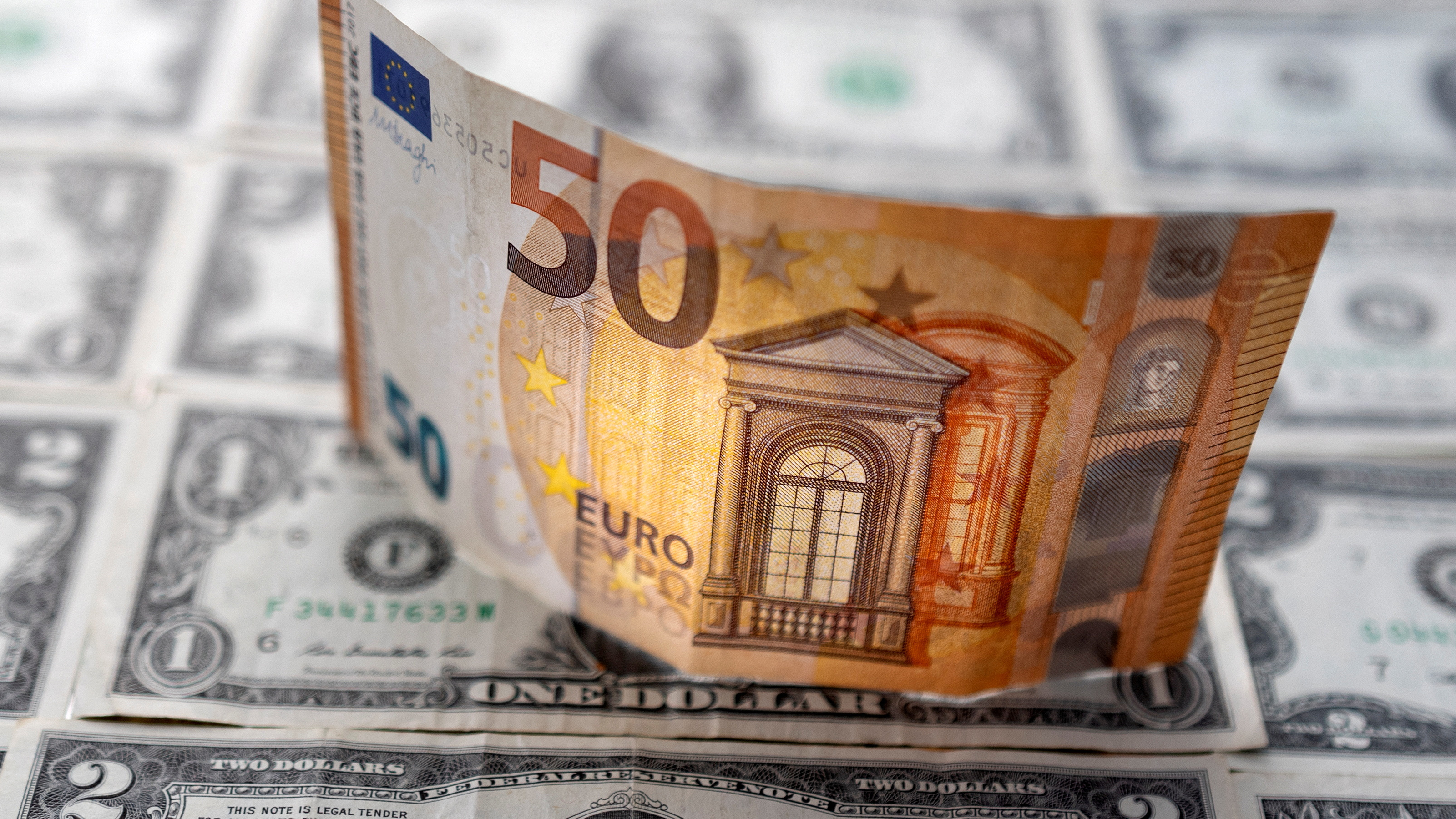 A Euro banknote is displayed on U.S. Dollar banknotes. /Reuters/Dado Ruvic/Illustration