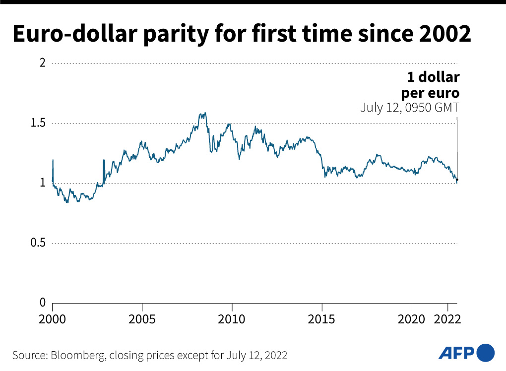 The euro has borne the brunt of dollar strength, falling as low as $1.00005, the weakest level since December 2002, and one that some analysts flagged as parity being tested.
