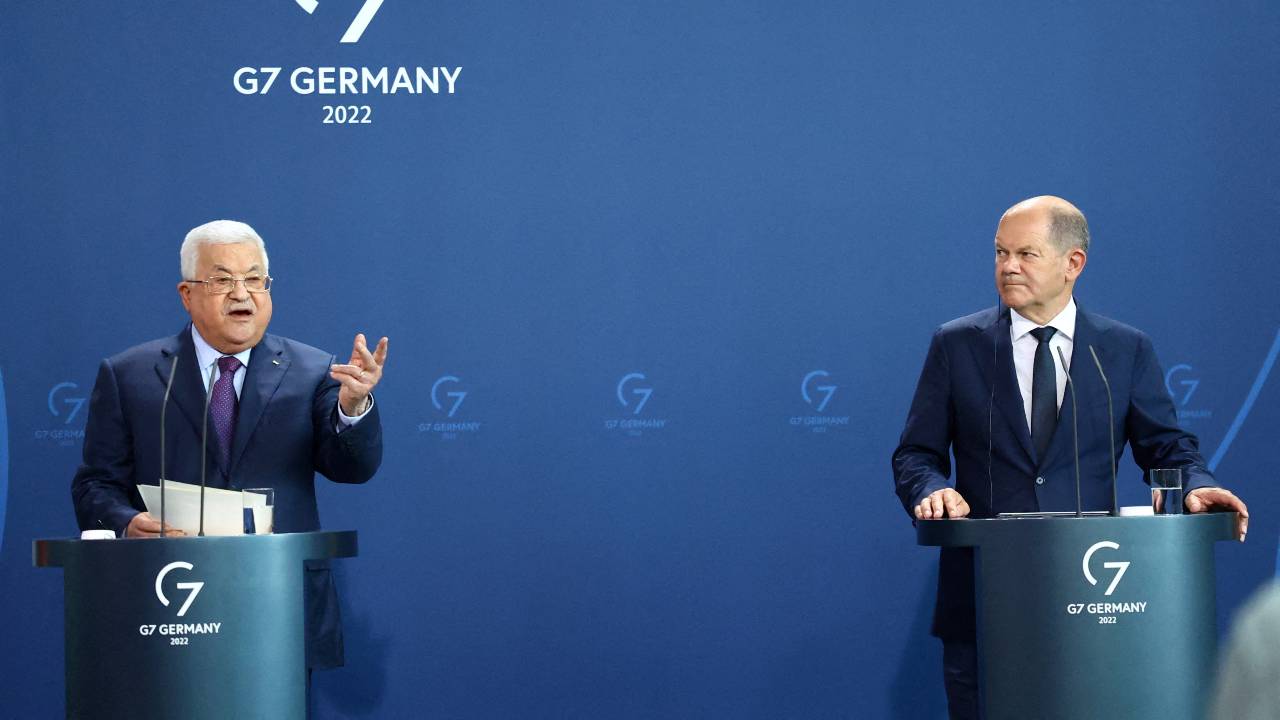At a joint presser with Scholz on Tuesday, Palestinian President Mahmoud Abbas responded to a question on whether he would apologize for the 1972 Palestinian attack on Israeli athletes in Munich by saying: "From 1947 until today, Israel has committed 50 massacres in 50 Palestinian villages”, and then added, “50 slaughters – 50 Holocausts."
