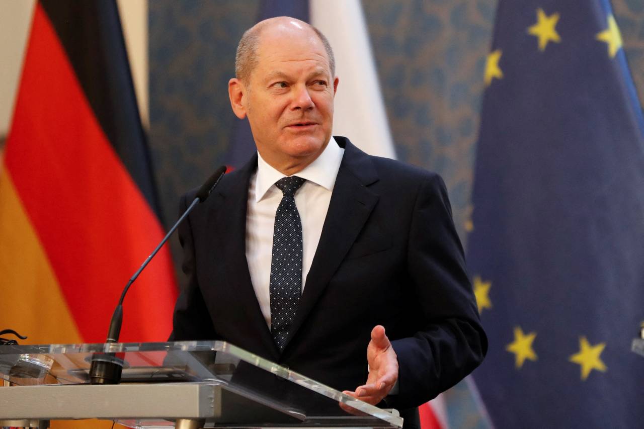German Chancellor Olaf Scholz attends a news conference with Czechia's Prime Minister Petr Fiala in Prague. /David W Cerny/Reuters