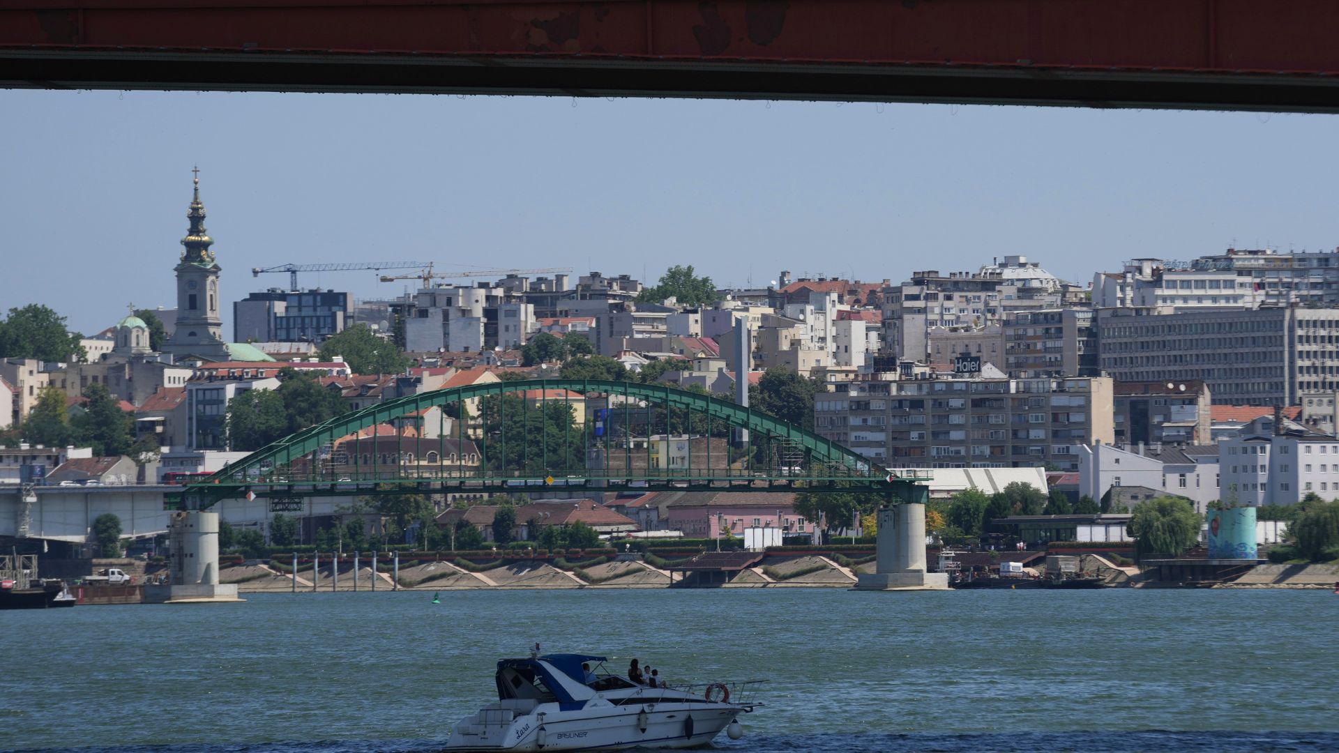 A boat float in shadow under the Gazela (Gazelle) bridge at Sava river in Belgrade, Serbia, June 20, 2025. /AP Photo/Darko Vojinovic