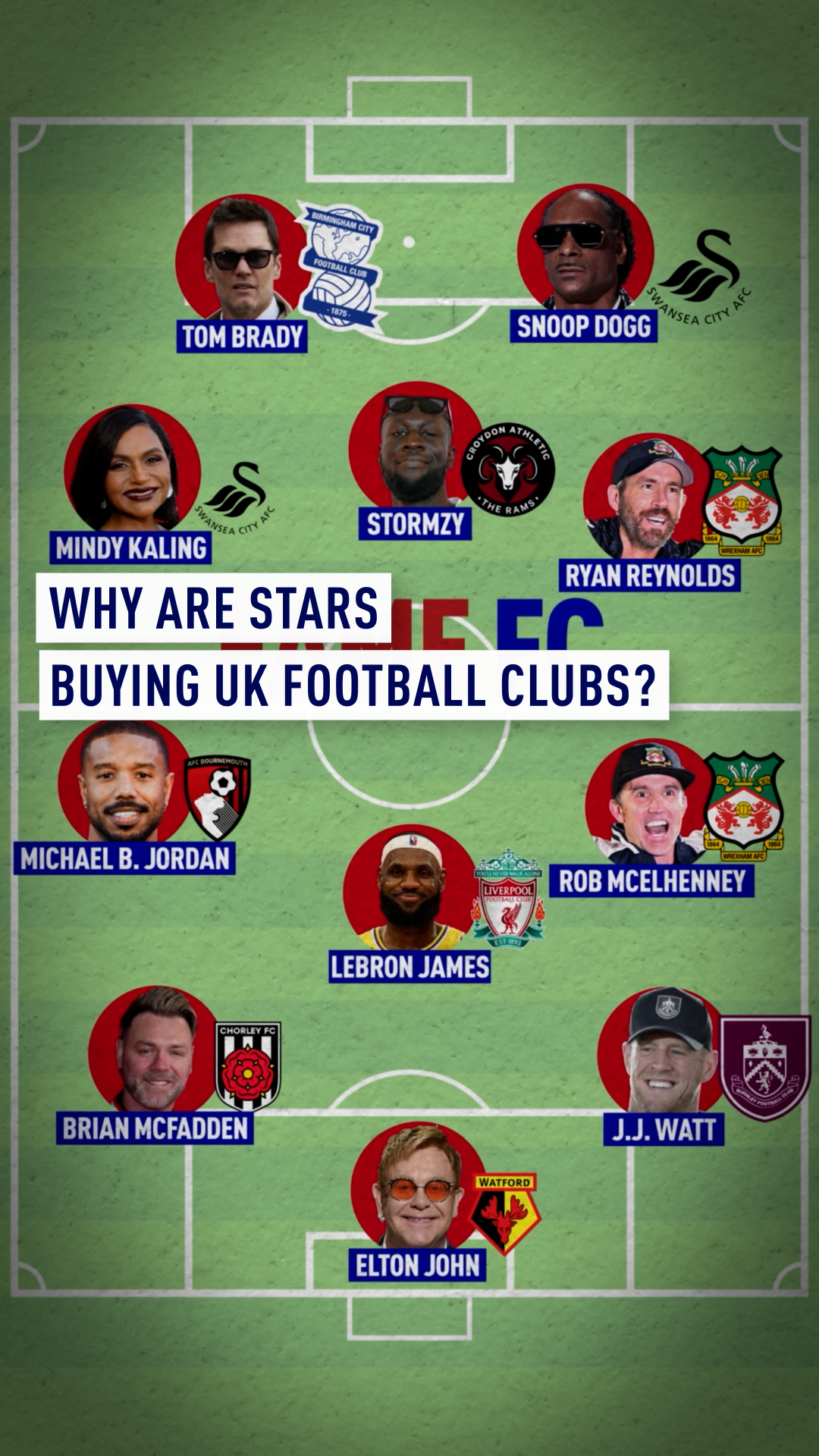 The game attracts huge investment because it's full of stars. But sometimes, the investors are the stars. More and more celebrities are investing in clubs….and not just in England's top tier.
