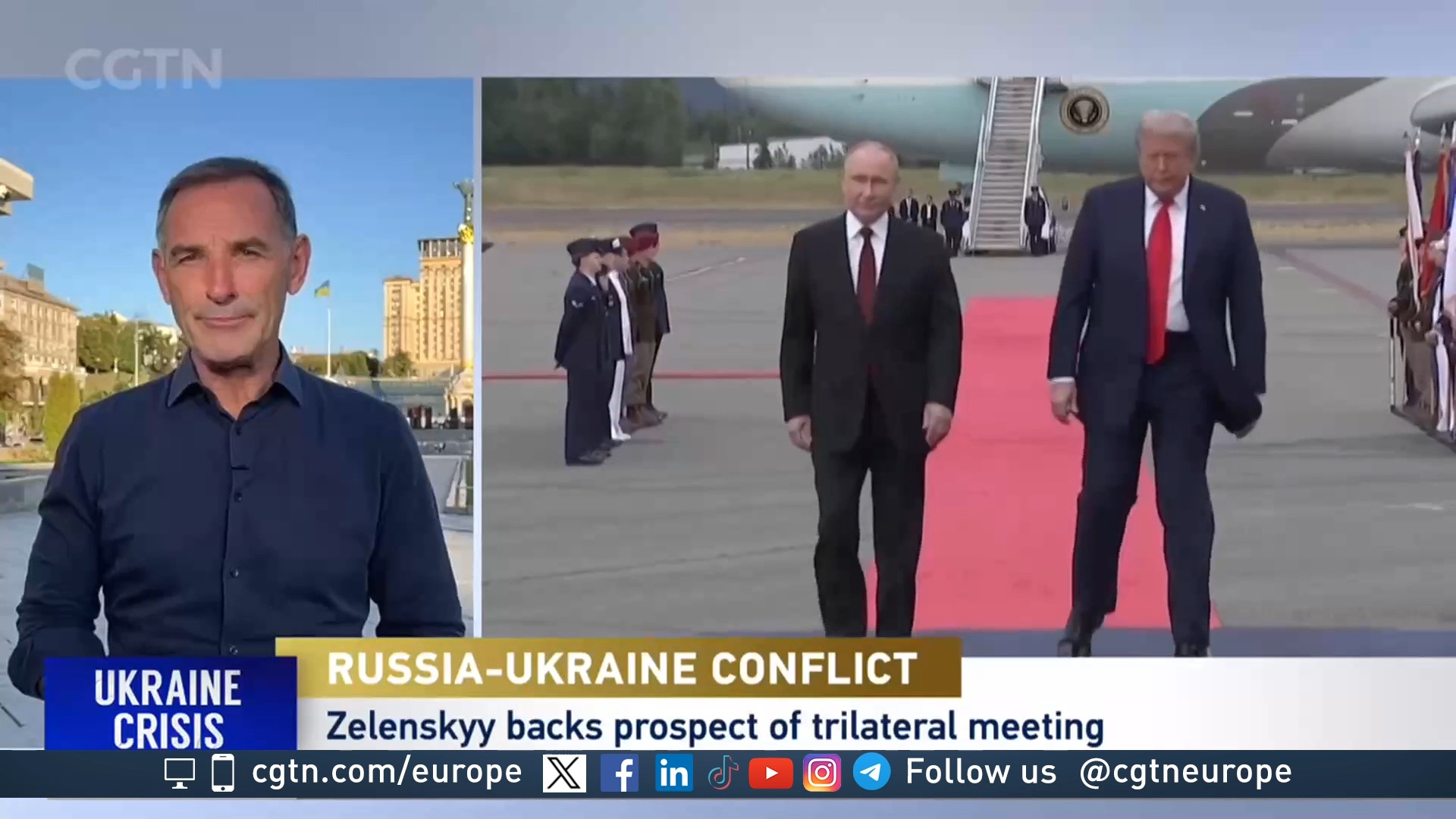 Zelenskyy and other European leaders have been careful not to complain about the meeting in Anchorage. /Iolo ap Dafydd/CGTN