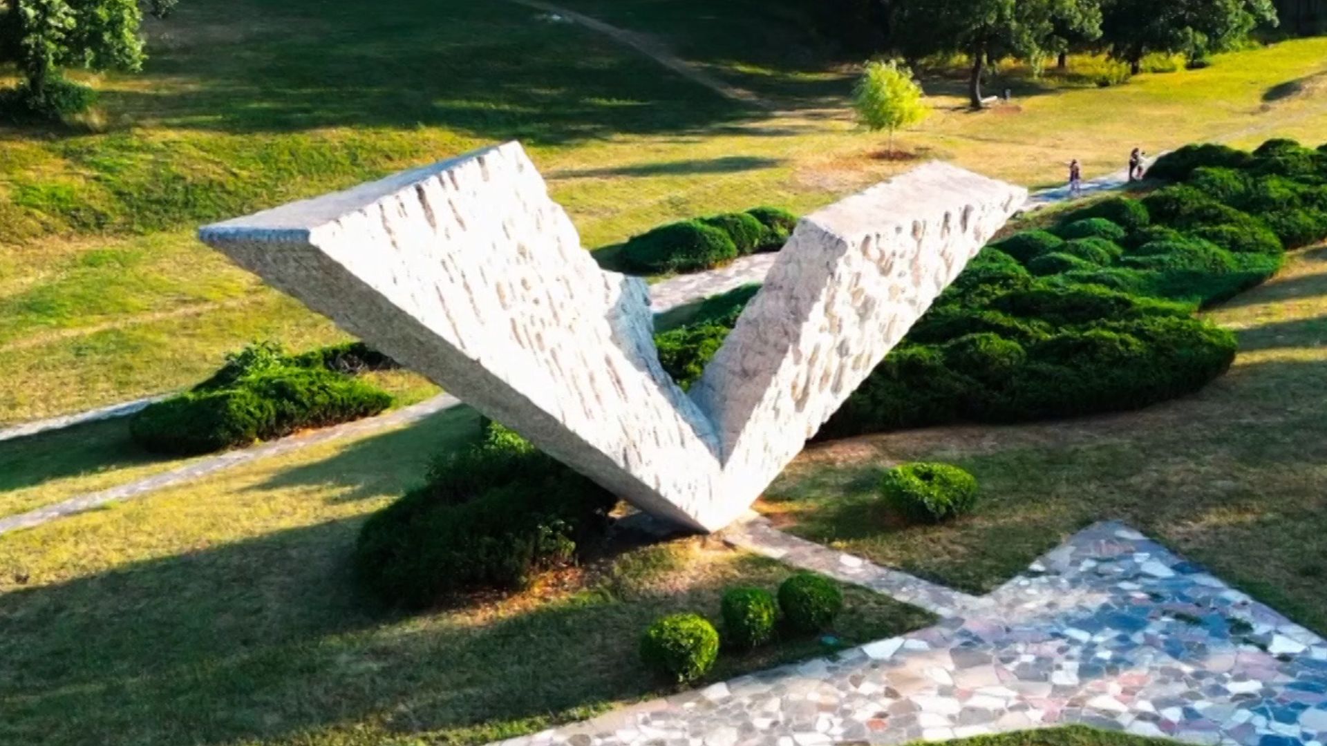 The stark 'For Killed Students and Teachers' monument in Kragujevac, shaped like a bird with broken wings, commemorates the murdered. /Marko Djurica/Reuters archive