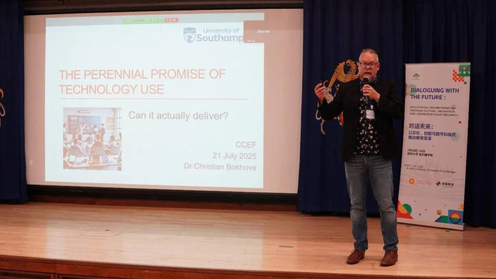 "Everyone is talking about AI nowadays and the public is looking forward to seeing us use more AI in education," said Professor Christian Bokhove. /CGTN Europe /Jian Feng