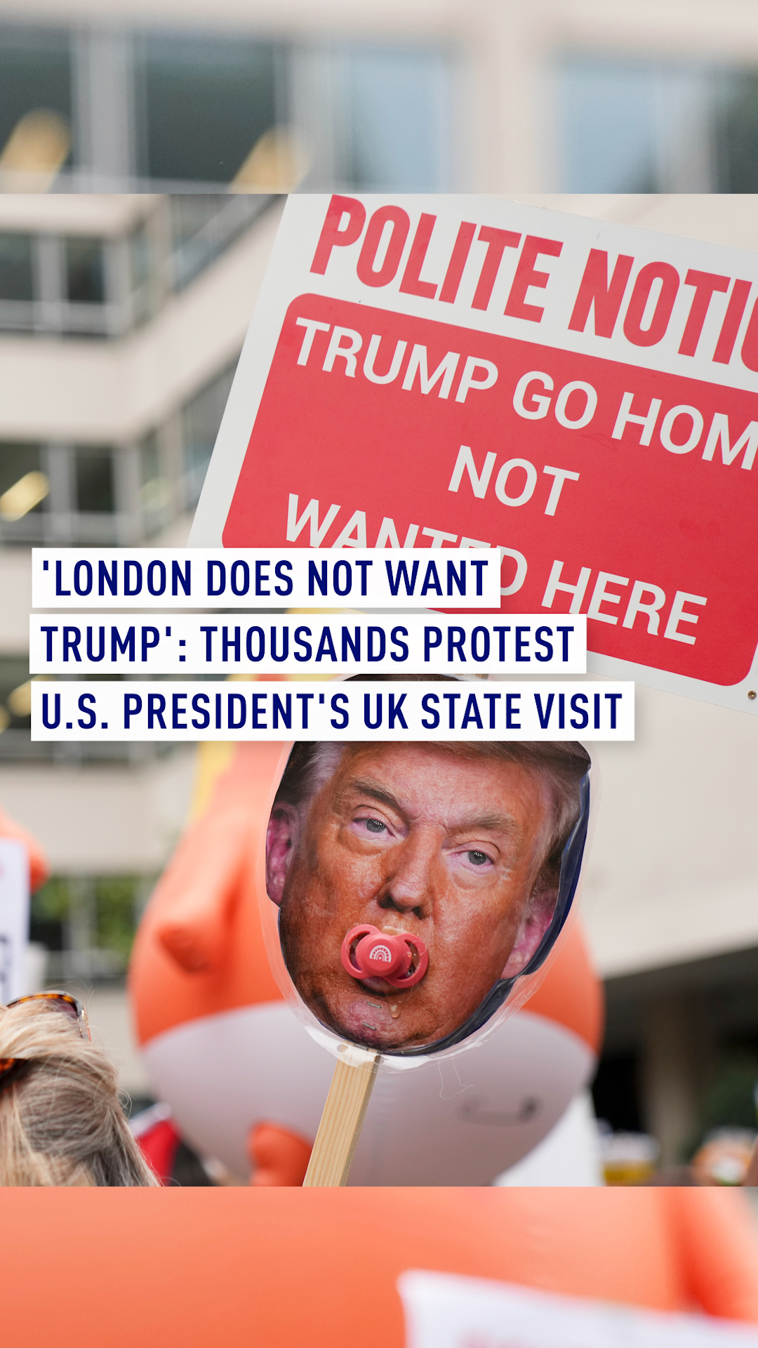 While all that was happening, a 'Trump Not Welcome' protest took place 25 miles (40 km) away in central London organised by the Stop Trump Coalition and supported by other organizations including pro-Palestinian activists.