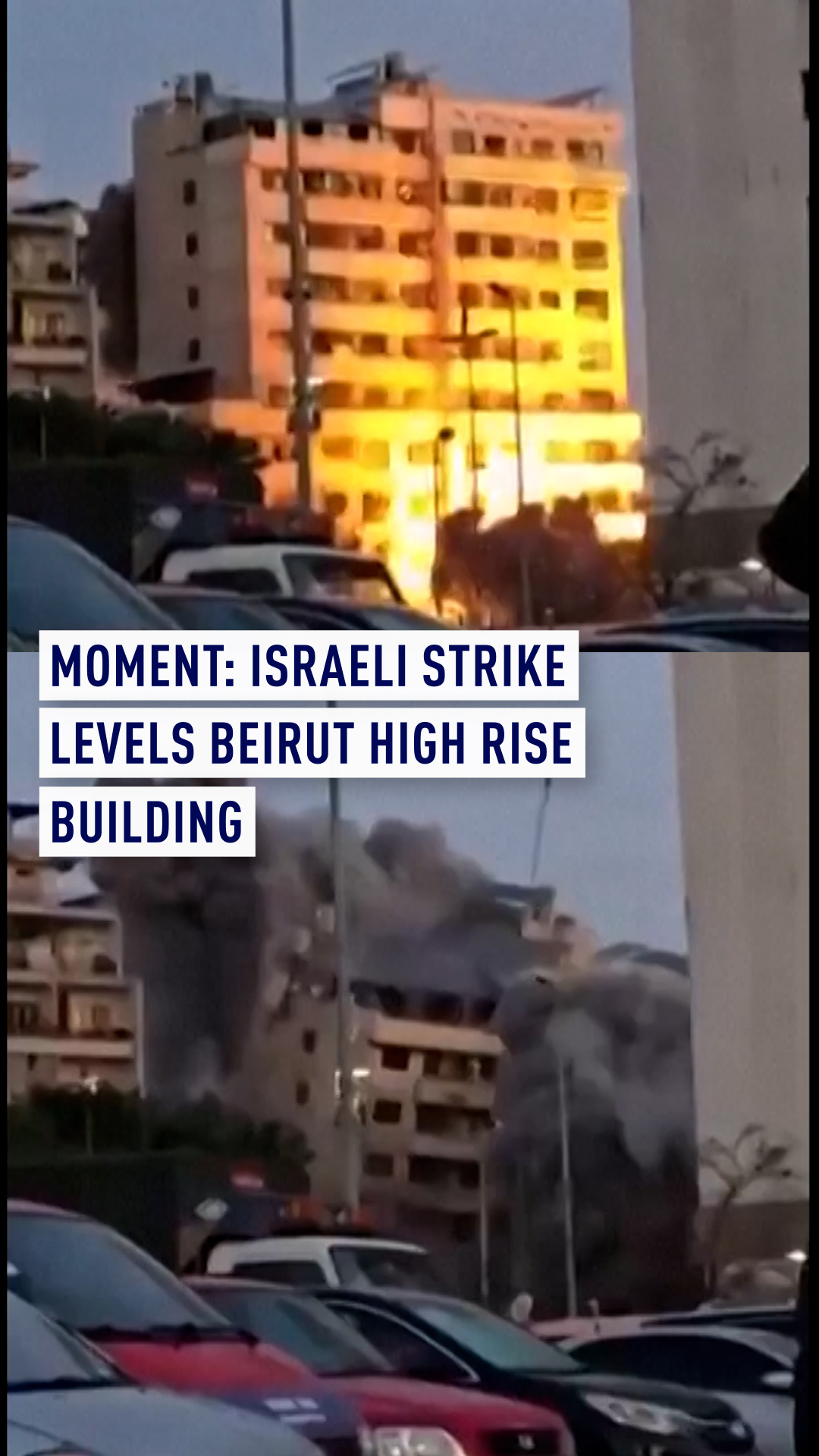 In central Beirut's Bachoura district, Israel warned residents to leave a building, which it then completely flattened. Eyewitness video showed the structure crumbling into dust as it was struck at dawn. Firefighters later clambered over a vast pile of smoking rubble.