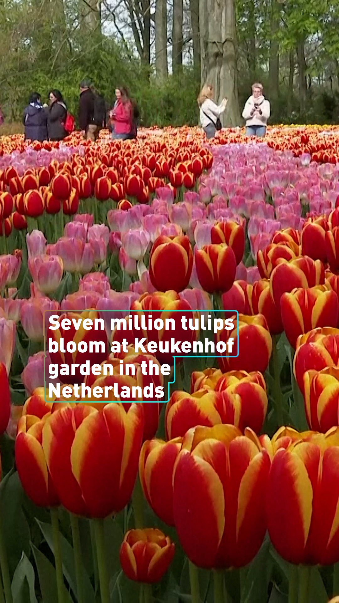 The tulips are in full bloom at Keukenhof garden in Lisse, Netherlands. It has opened for the spring flower season, and the seven million bulbs will flower over the eight weeks the park is open.